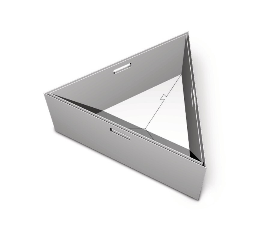 The result is a very flexible stand. It can be placed individually in the corner, in front of a wall (two sides visible) or freely in the room (three sides)